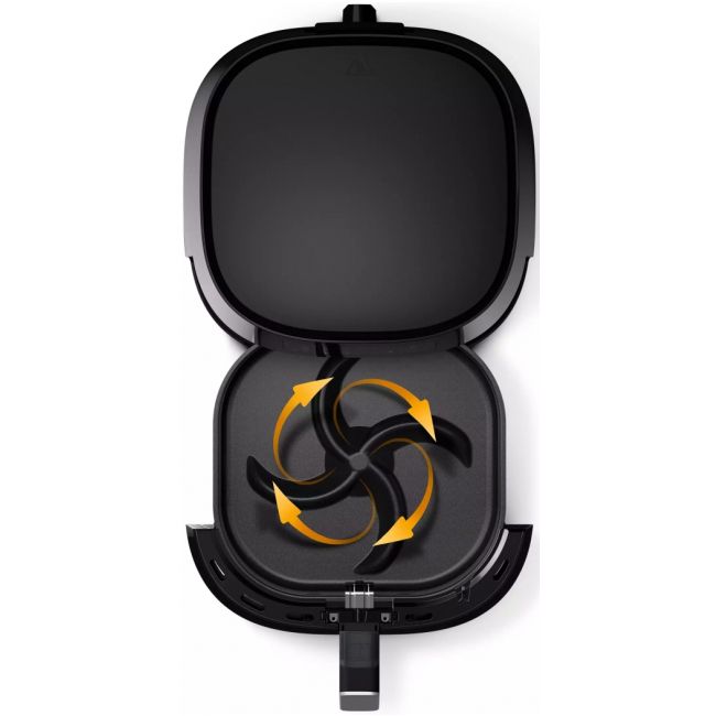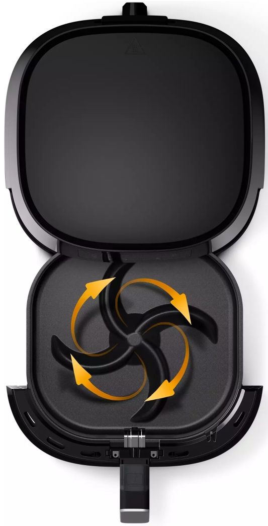 Technologia Rapid Air z wyjątkową konstrukcją w kształcie rozgwiazdy powoduje wirowanie gorącego powietrza, aby przygotowywać pyszne potrawy, które są chrupiące na zewnątrz i delikatne w środku, z niewielką ilością lub bez dodatku oleju.