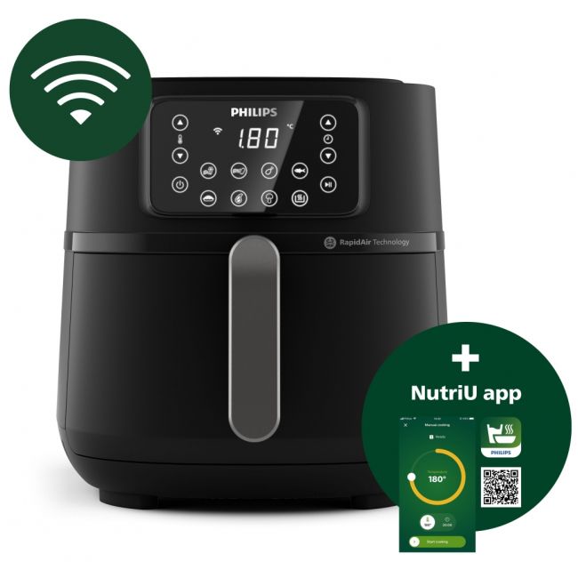 Urządzenie Philips Airfryer serii 5000 XXL Connected to Twój towarzysz w codziennym gotowaniu, umożliwiający przygotowywanie bezproblemowych, zbilansowanych pod względem odżywczym i wyśmienitych posiłków dla całej rodziny o każdym dniu tygodnia.