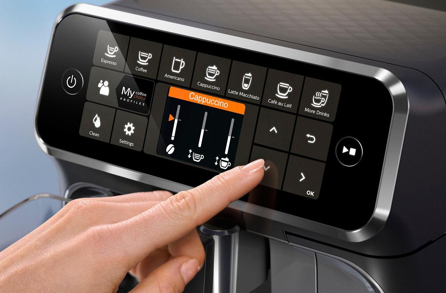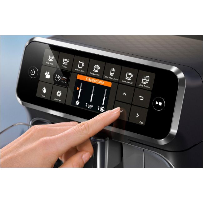 - Maks. wysokość filiżanki: 150 mm - 2 profile użytkownika - System spieniania mleka LatteGo - Ceramiczny młynek - 12-stopniowa regulacja młynka - Regulacja wysokości dyszy