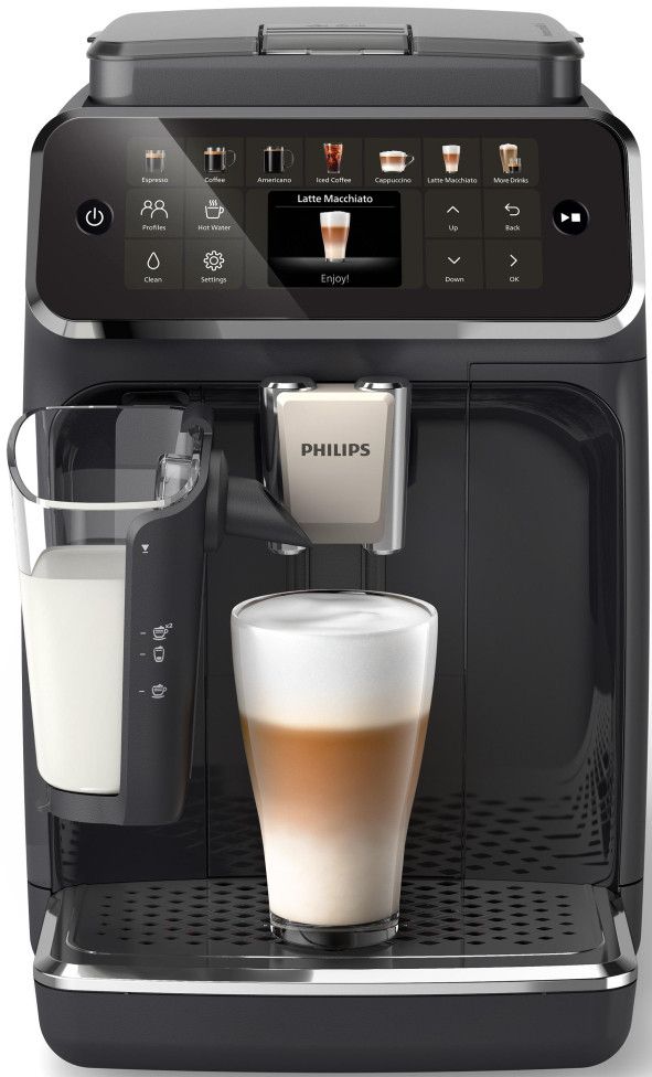 - Regulowana wysokość wylewki kawy: 85–145 mm - System spieniania mleka LatteGo - Ceramiczny młynek - 12-stopniowa regulacja młynka - Pojemność pojemnika na mleko: 0,26 l - Profile użytkownika: 2 i goście