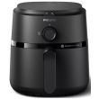 Zwarta konstrukcja jest odpowiednia dla kuchni o każdym rozmiarze. Patelnia o pojemności 3,2 l mieści do 400 g frytek, 4 udka z kurczaka lub 400 g warzyw.