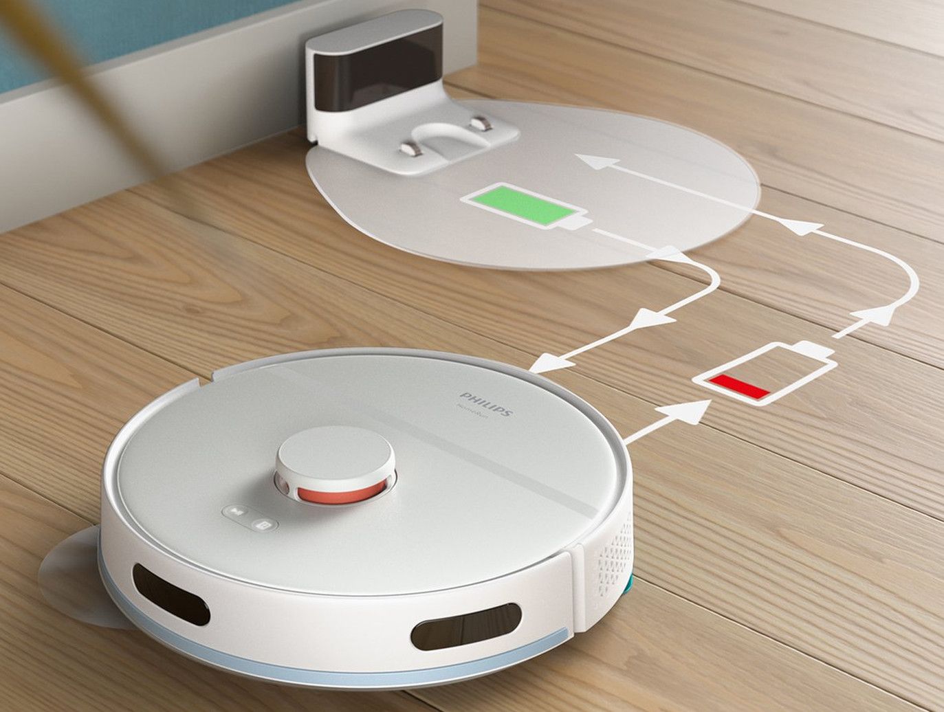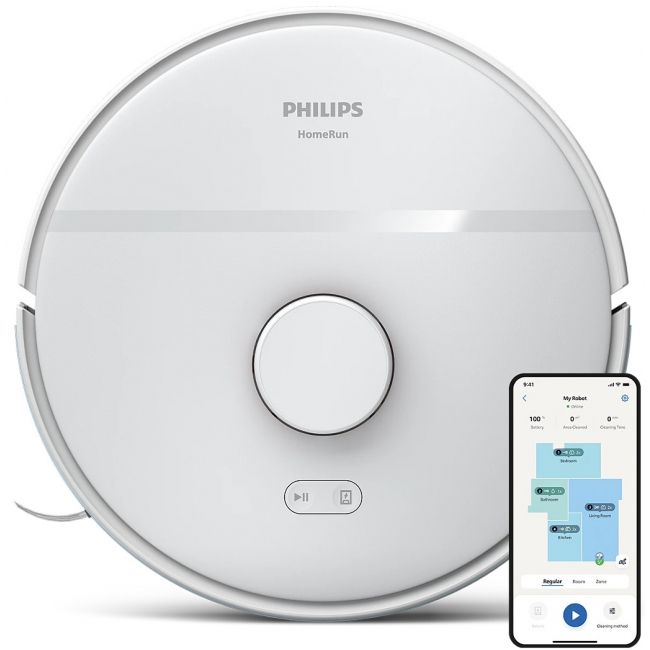 Aplikacja robota Philips HomeRun jest intuicyjna i przyjazna dla użytkownika. Zawiera instrukcje krok po kroku i pomocne filmy, które pomogą Ci w pełni wykorzystać możliwości robota. Aplikacja komunikuje się z Twoim robotem, dzięki czemu możesz kontrolować wydajność sprzątania z dowolnego miejsca, przeglądać raporty i aktualizacje dotyczące wydajności sprzątania oraz dowiedzieć się w czasie rzeczywistym, które obszary zostały już wyczyszczone. Zdecyduj, jak posprzątać pomieszczenie, gdzie robot nie może sprzątać lub o której godzinie robot powinien posprzątać Twój dom, aby podłoga lśniła czystością, gdy wrócisz do domu.