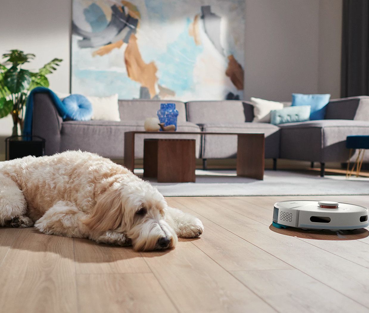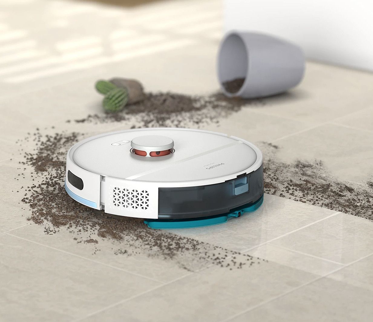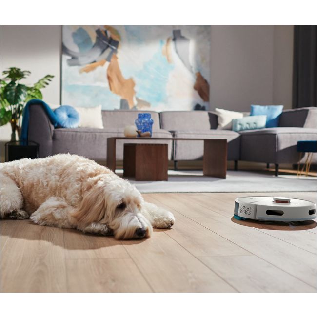 Robot odkurza i myje twarde podłogi za jednym razem, usuwając cienką warstwę kurzu, który gromadzi się na podłodze każdego dnia. Urządzenie usuwa więcej drobnego kurzu niż samo odkurzanie, dzięki czemu Twoje stopy pozostają czyste nawet wtedy, gdy chodzisz boso.