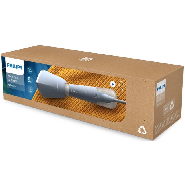 Parownica ręczna Philips z serii 5000 jest gotowa do wytwarzania pary w każdej chwili. Wystarczy ustawić głowicę na parowanie ubrań na wieszaku lub płaskiej powierzchni i rozpocząć prasowanie za pomocą pary. Regulowana, odchylana głowica oznacza, że urządzenie można łatwo spakować w podróż oraz szybko i łatwo schować w domu.