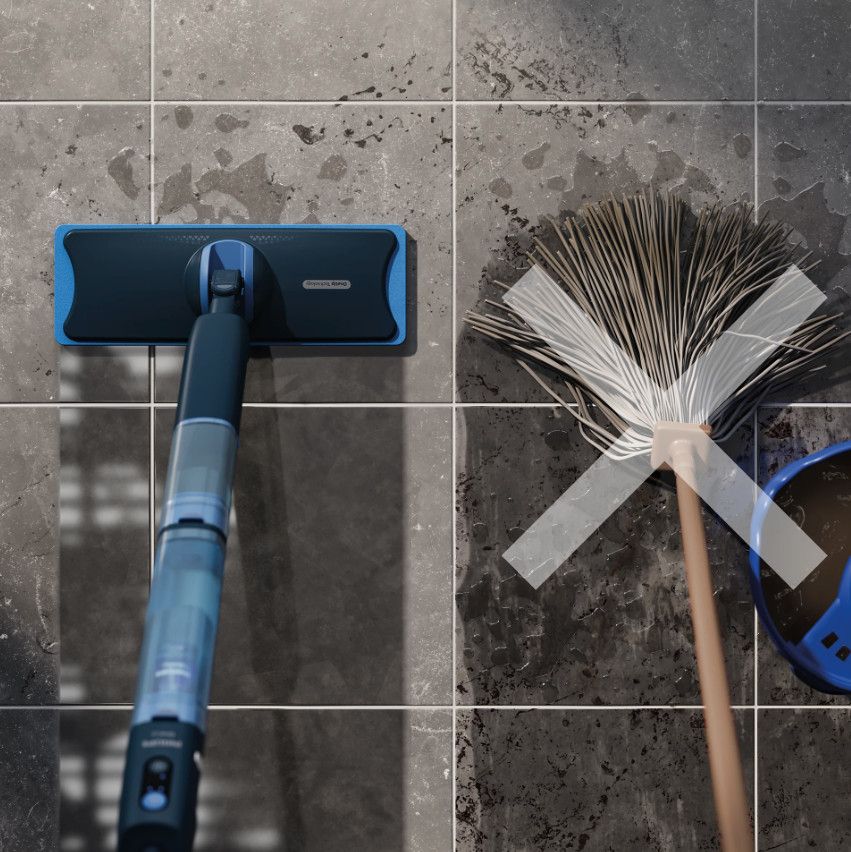 Opatentowana technologia OneUp dystrybuuje czystą wodę na podłogę, jednocześnie cicho zasysając brudną wodę, zapewniając efektywne elektryczne mopowanie.